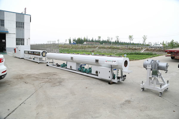 华德PE管材生产线的挤出机的螺杆采用屏障式结构,机筒拥有独特的沟槽式结构,以便达到良好的塑化和混炼效果。HDPE(PP、ABS)大口径管材则采用篮式模具的特殊设计,降低溶解温度和主机压力,达到很好的混合效果,从而使产量得到保证。