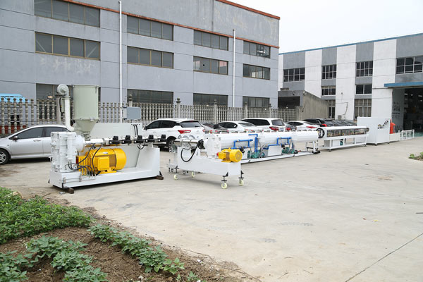 配套单螺杆挤出机(常规采用单螺杆挤出机,如有特殊情况将有所不同,平行双螺杆挤出机和锥形双螺杆挤出机根据实际情况而定),适台PE树腊挤出,产量高,最高产量可达1OOO公斤每小时(PP、ABS产量可联系我们了解)。