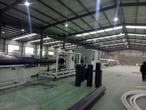 HDPE大口径塑料管材生产线/塑料管材PE大口径设备采用高效单螺杆挤出机, 使用PLC全自动控制系统。此外,该生产线还可以通过更换模具或其他装置生产PERT,PEX 和PB管。